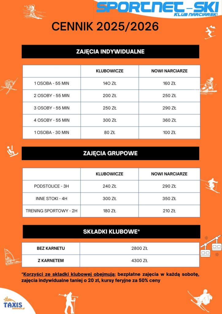 Ceny zajęć obejmują cenę karnetów!